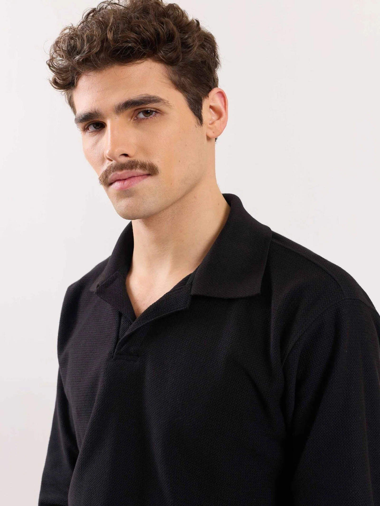 Black Jacquard Knit Polo T-shirt