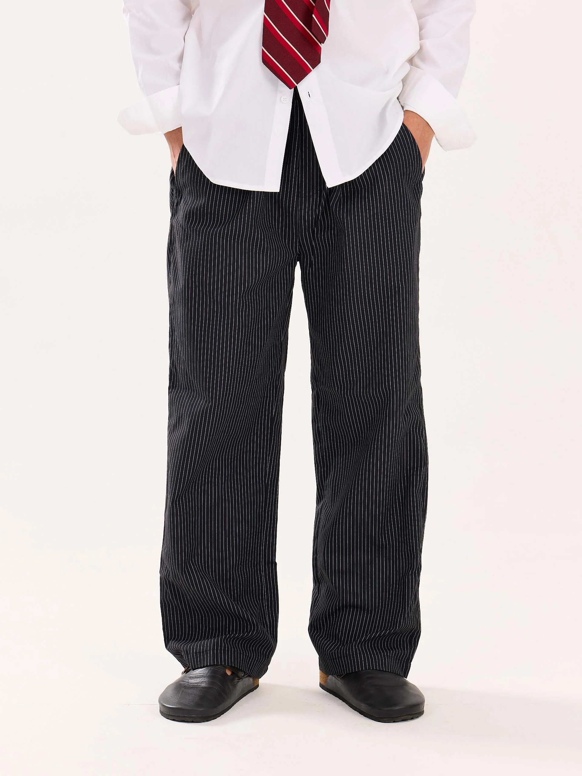 Black Pinstriped Poplin Pull-on Pants