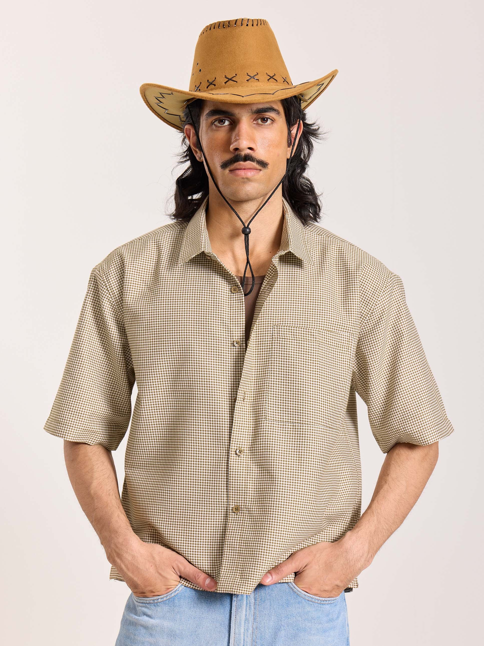 Brown Checkered Cropped Shirt