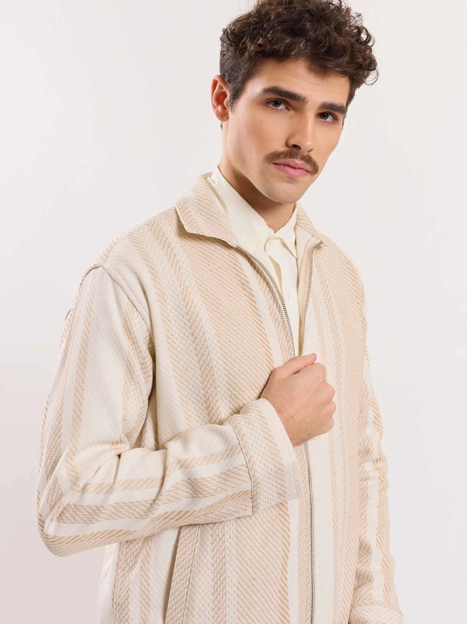 Cropped Fit Textured Zipper Jacket—