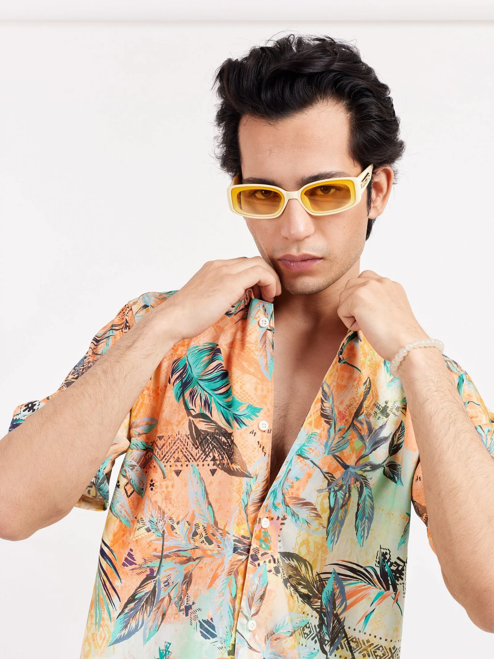 Relaxed fit leaf printed shirt in soft rayon, has a spread collar, half sleeves, straight-cut hem with a button placket.