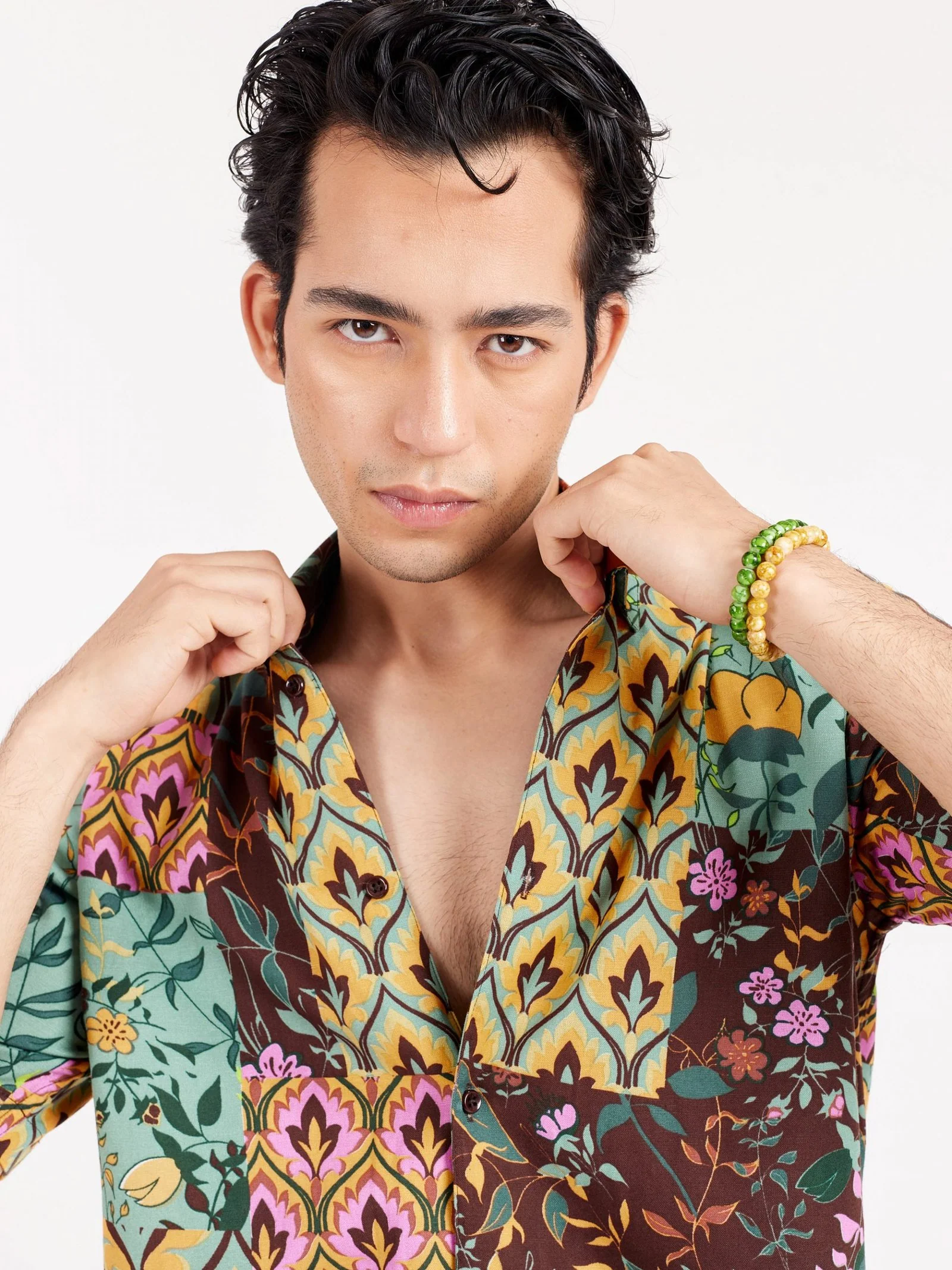 Relaxed fit printed shirt in soft rayon, has a spread collar, half sleeves, straight-cut hem with a button placket.
