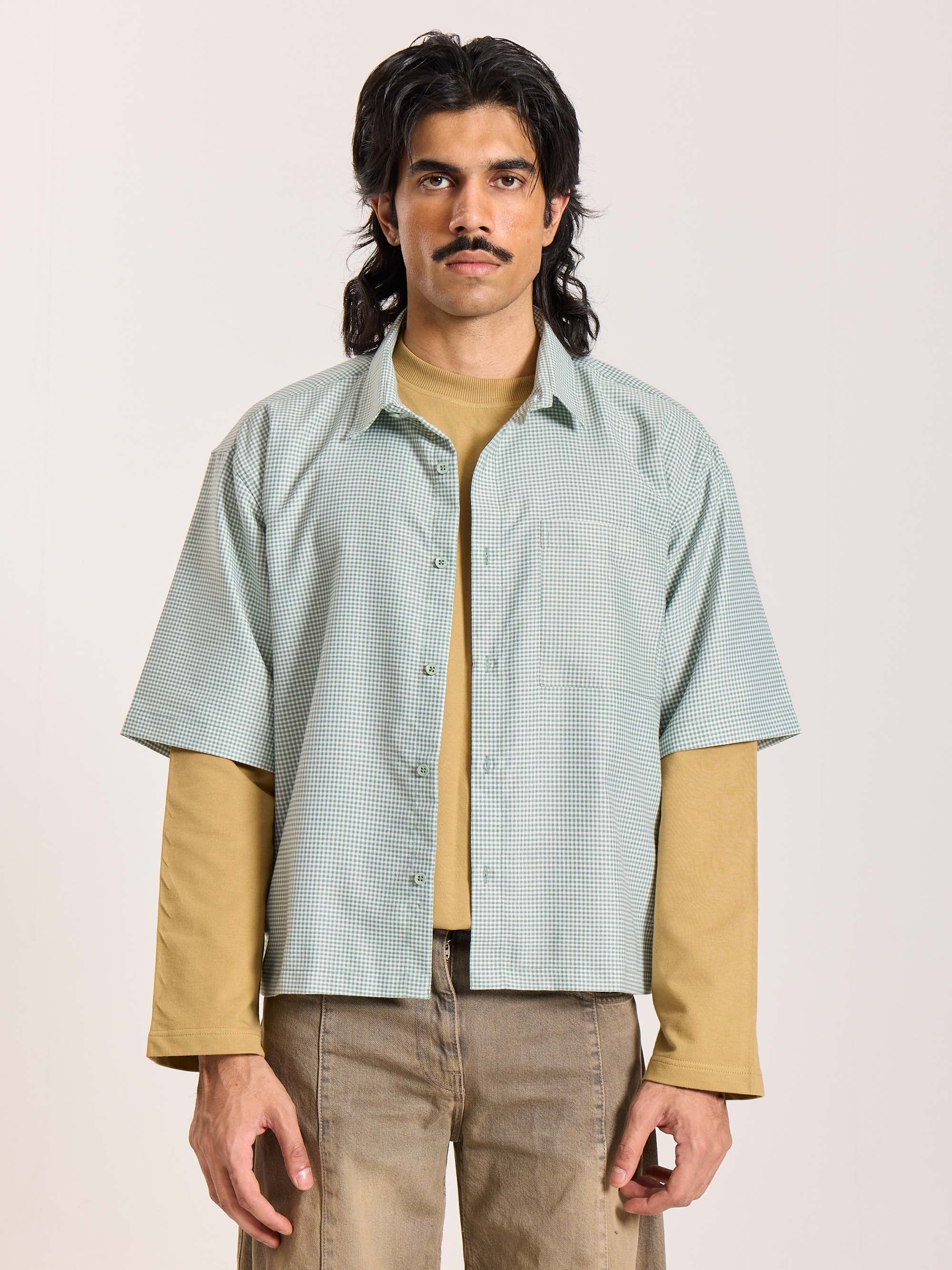 Green Checkered Cropped Shirt