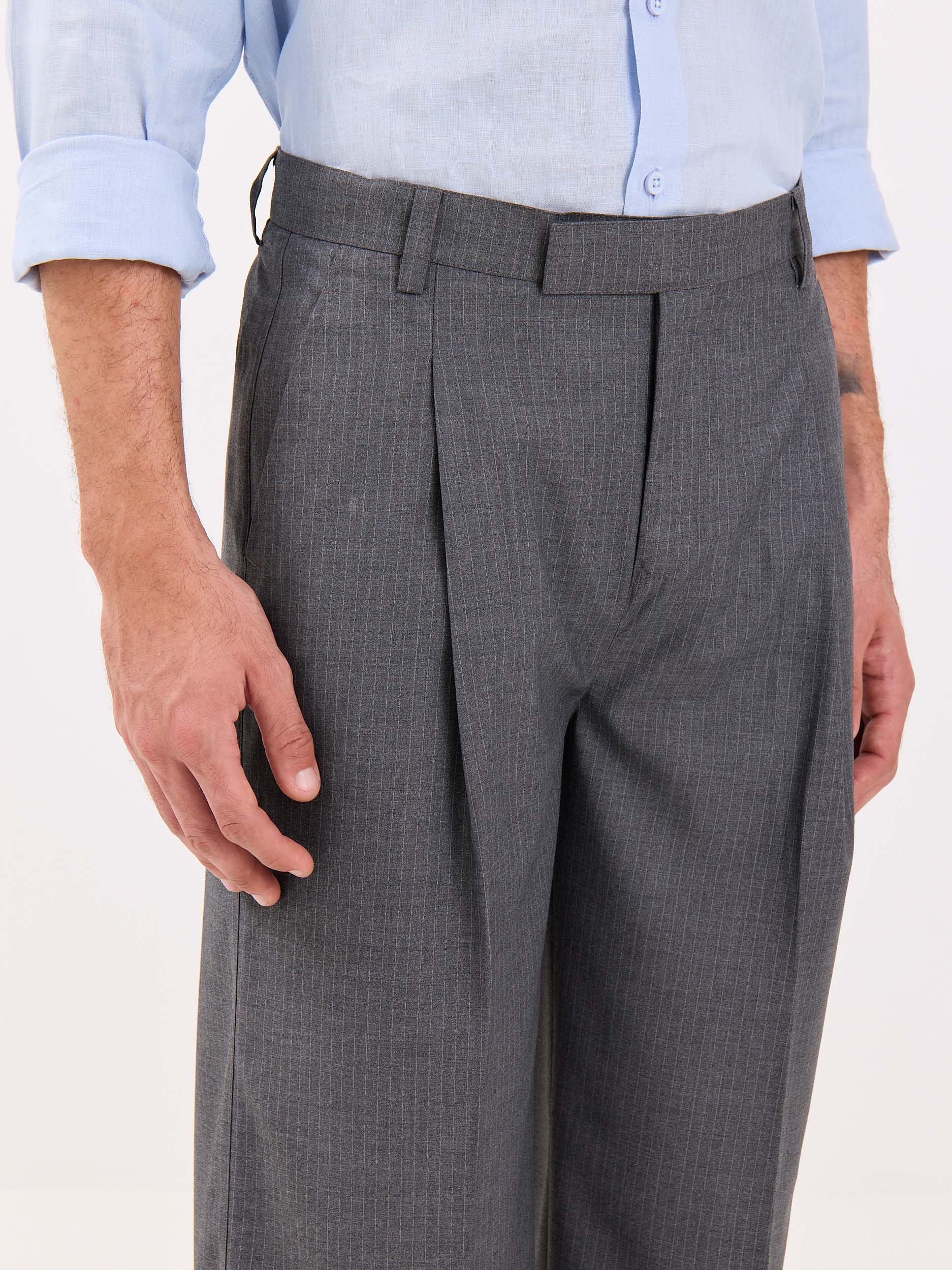 Grey Pinstriped Baggy Fit Trousers