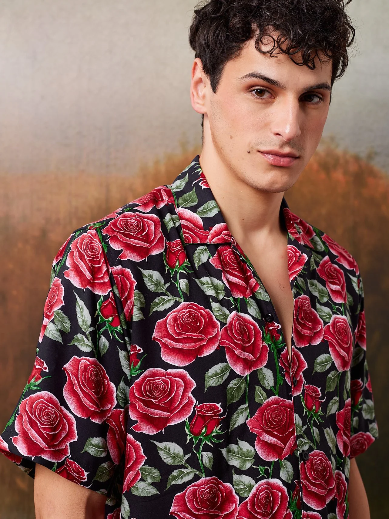 Printed shirt in Rayon, has a spread collar, half sleeves, straight-cut hem with a button placket.