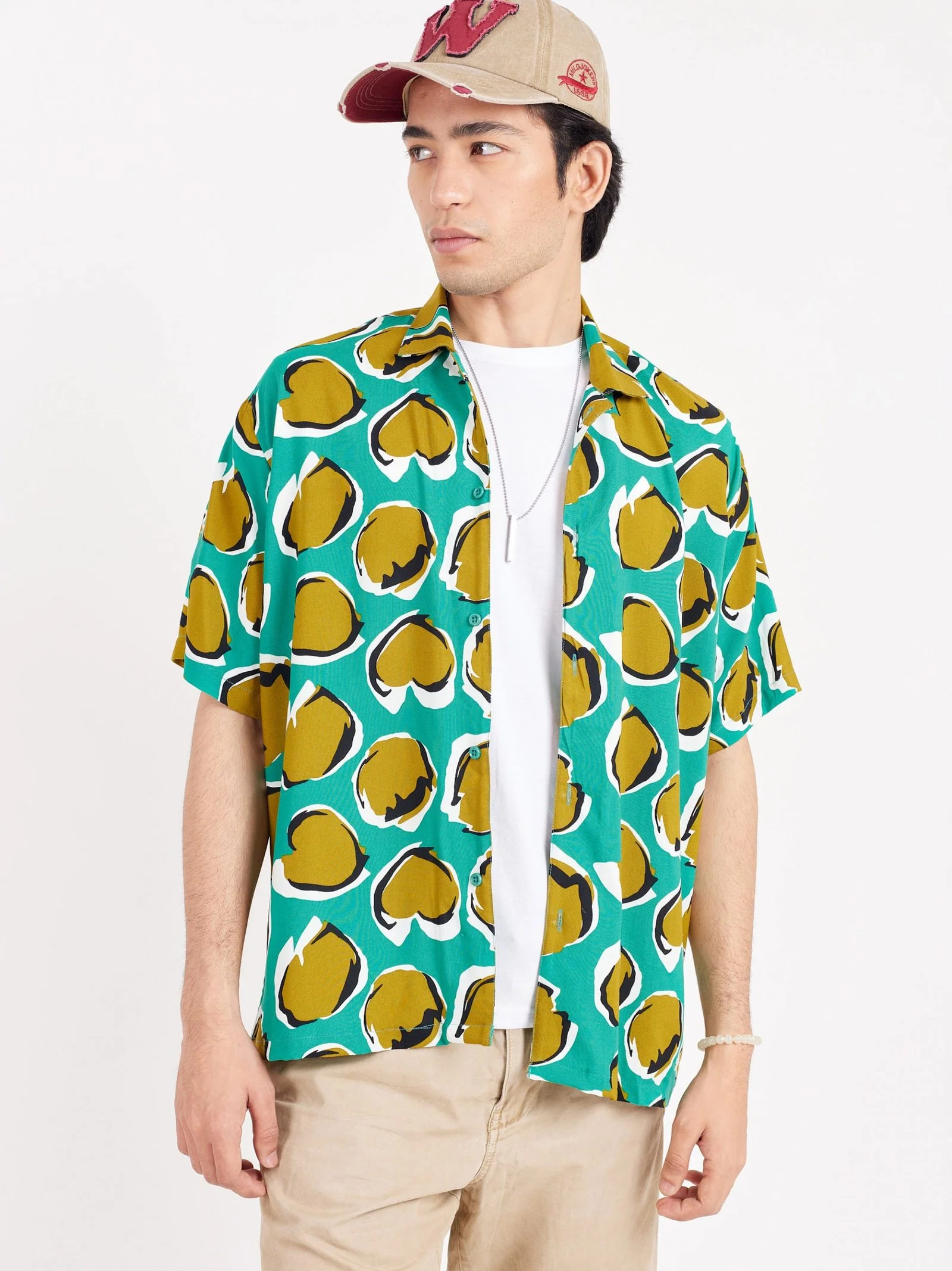 Relaxed fit printed shirt in soft rayon, has a spread collar, half sleeves, straight-cut hem with a button placket.