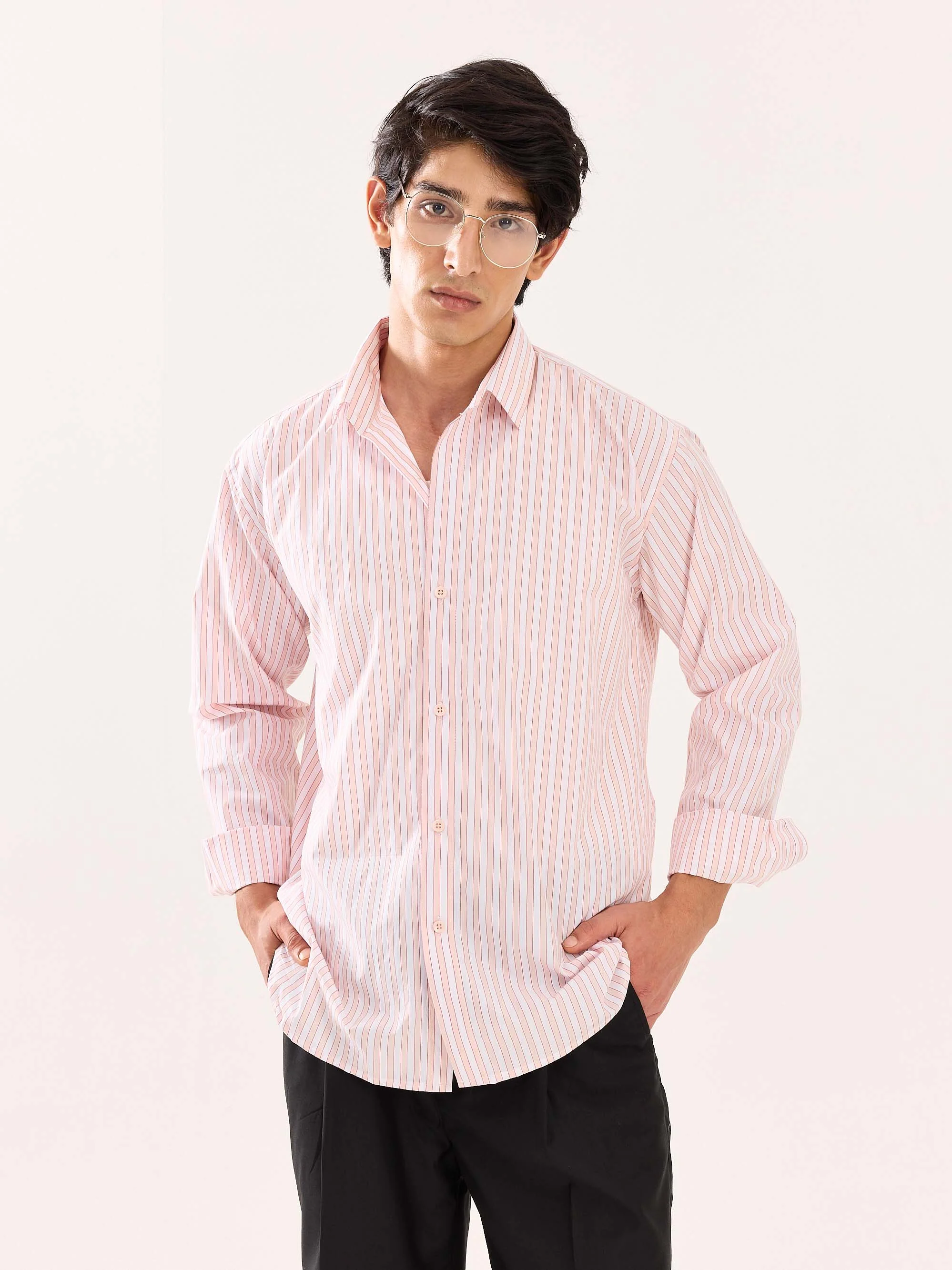 Peach & White Striped Poplin Shirt
