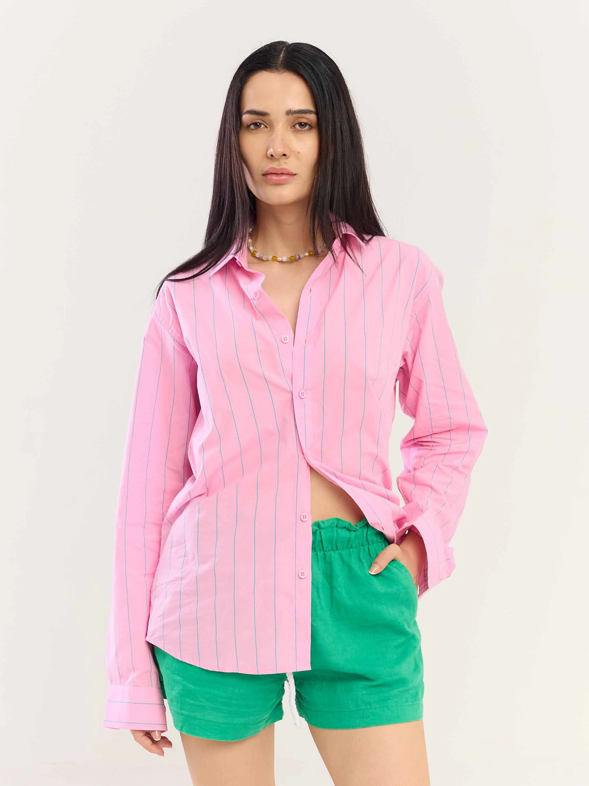 Pink & Green Striped Poplin Shirt
