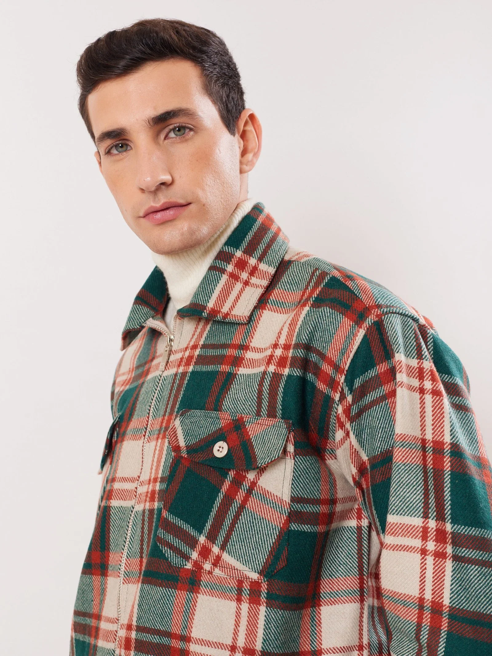 Relaxed Fit Plaid Zipper Jacket