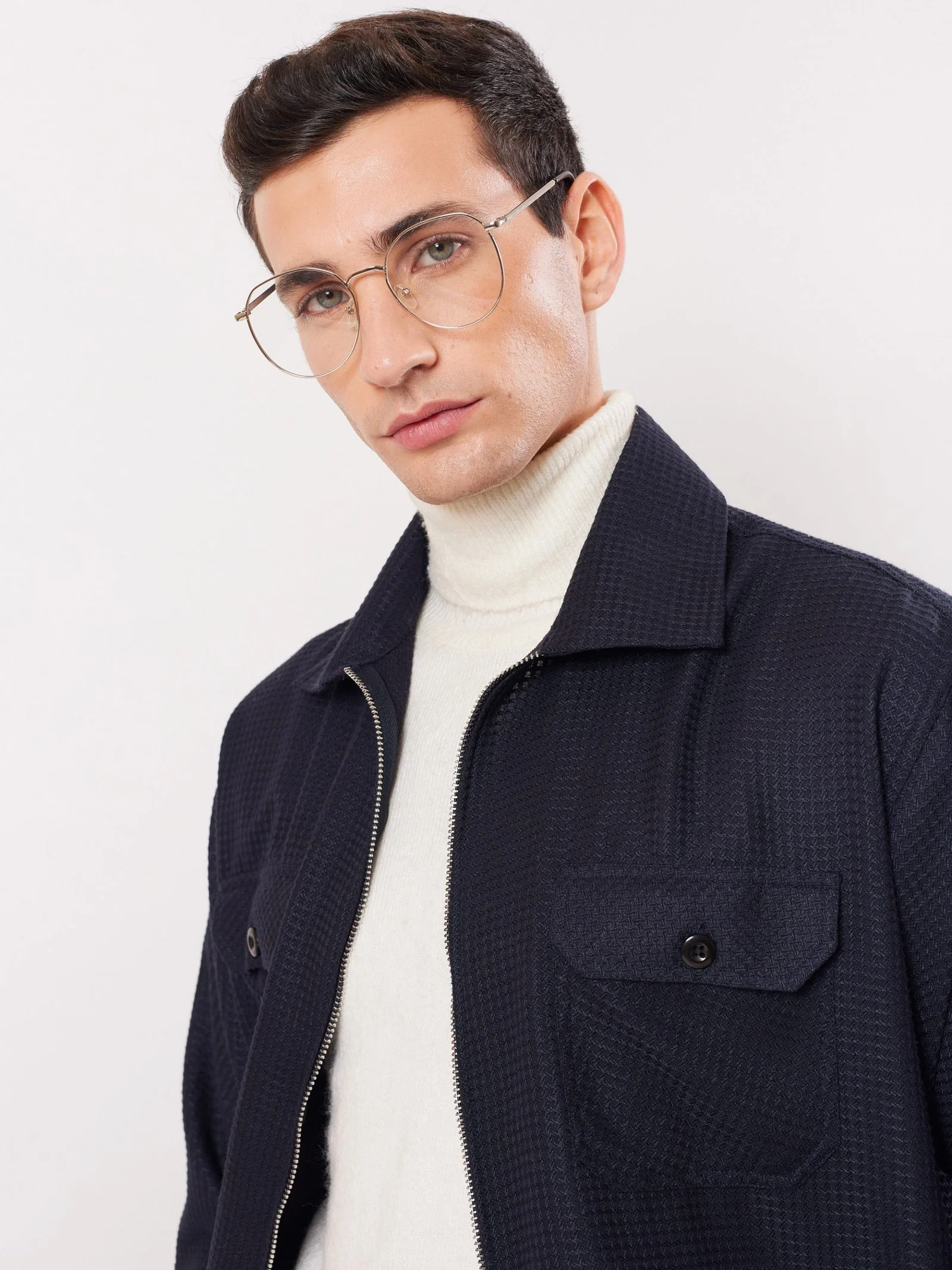 Relaxed Fit Textured Zipper Jacket