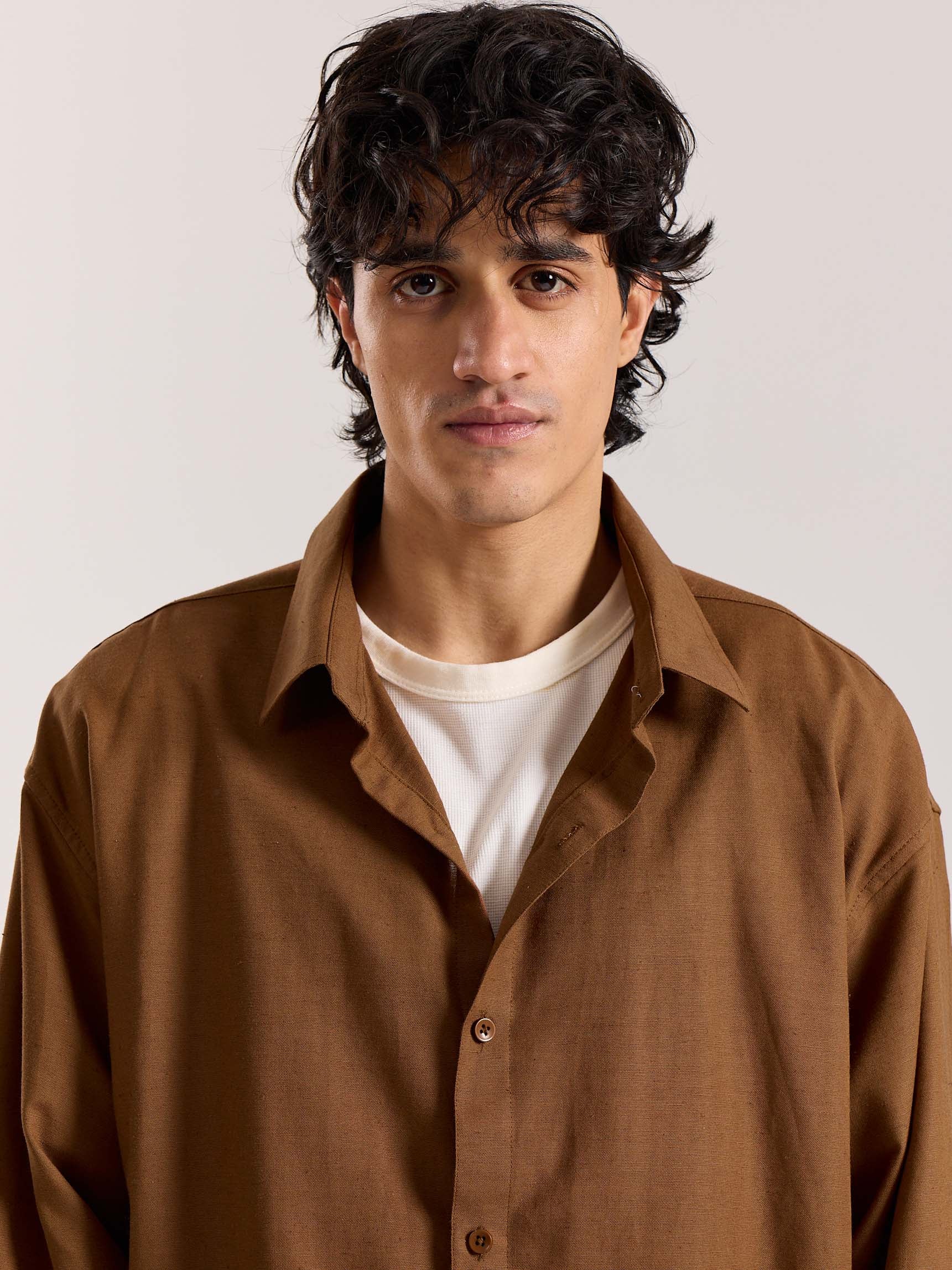 Rust Brown Linen Cropped Shirt