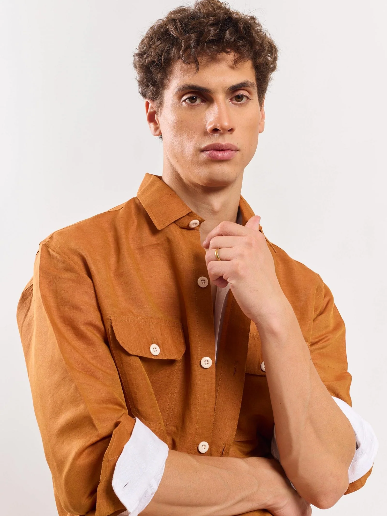 -70%Tan Linen Overshirt—