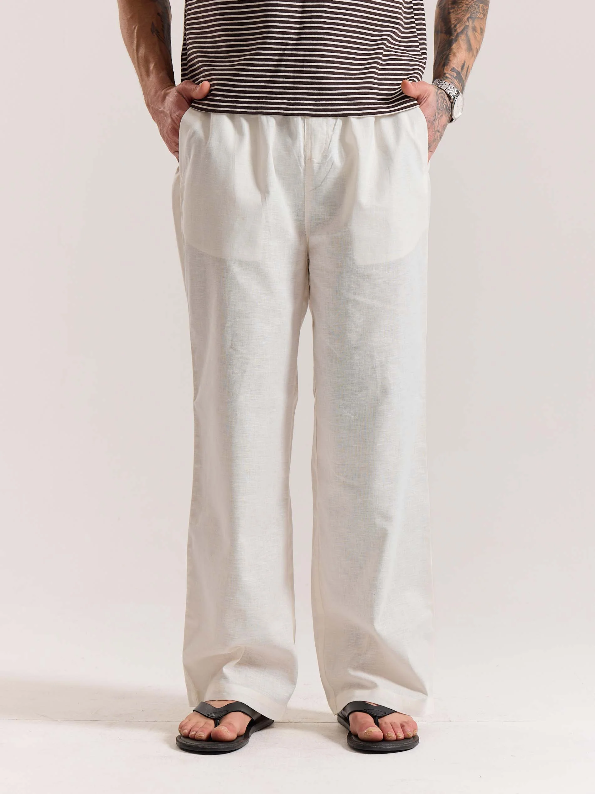 White Linen Pull-on Pants